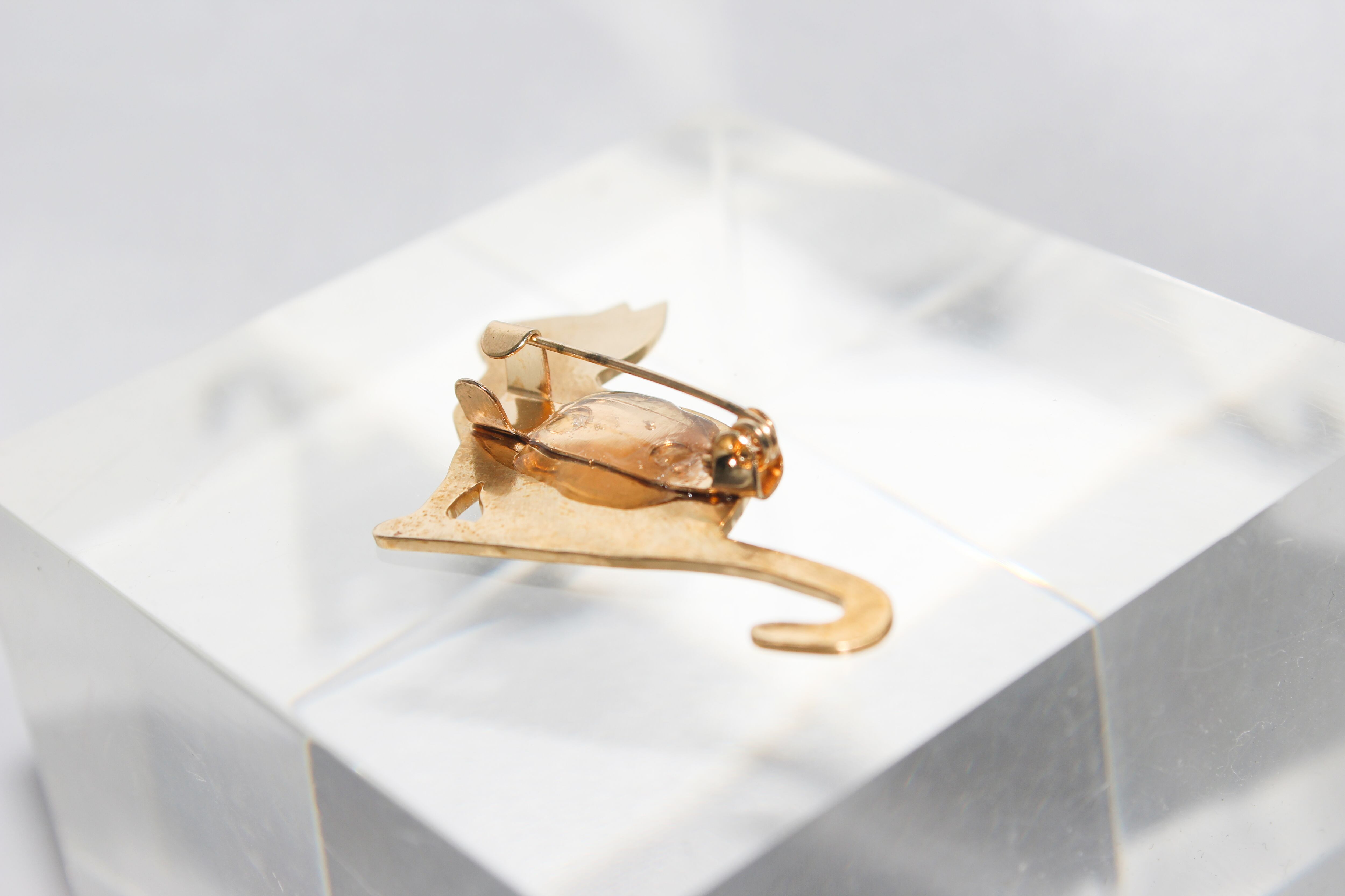座った猫の真鍮ブローチ